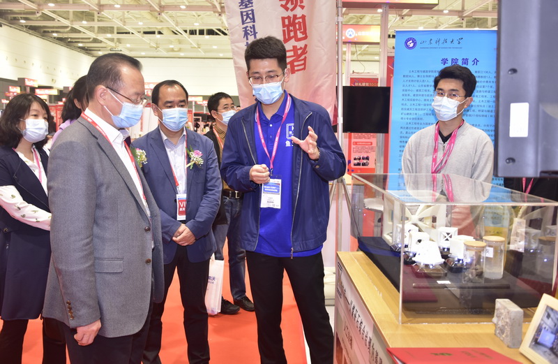 本届“高博会”期间,首届高等学校科技创新大会同期举办。“献礼建党100周年”高校科技创新成果展是创新大会的重要板块,筛选了来自全国61所高校的336个科技创新成果进行展出,开云手机官方版在线入口科技处精心组织学校相关成果参会,筛选了井巷喷浆粉尘污染防治关键技术及装备、铝离子电池等12项科技成果参展,基本涵盖了所有八大展区,通过设备实物展台展出,多媒体设备播放、展板展示等多样化的展示形式参展,生动直观地将学校科技成果进行呈现,吸引了众多观众关注。