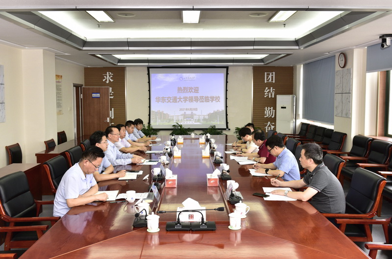 6月28日,华东交通大学党委书记柳和生、副校长杨辉一行来校访问,校党委书记罗公利会见了客人,副校长周东华陪同。双方就科技成果转化、深化科技创新体制机制改革等方面工作进行座谈交流。