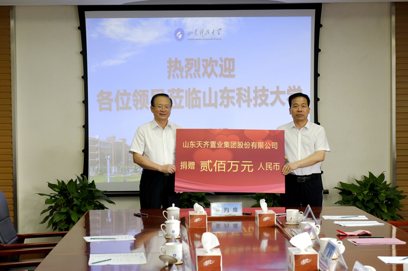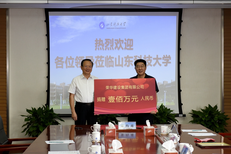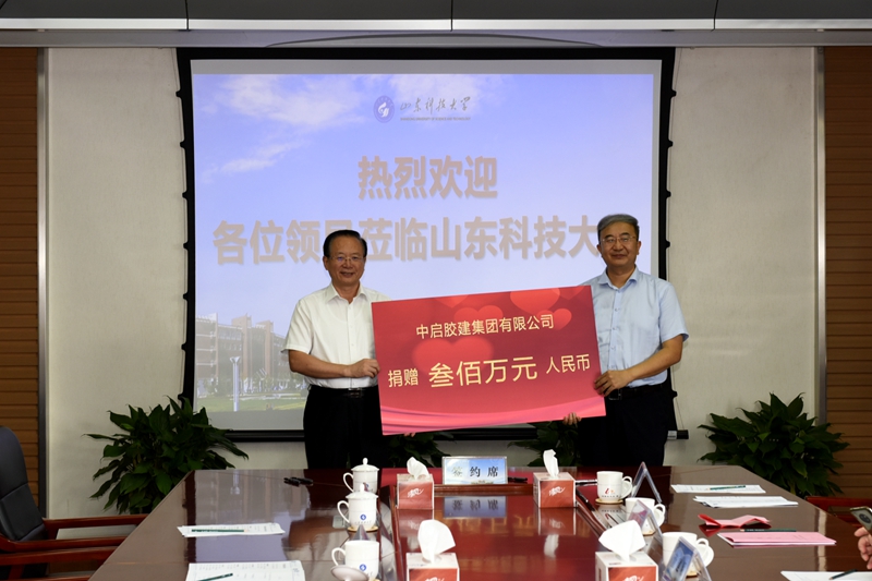 捐赠仪式上,中启胶建集团、山东天齐置业集团、荣华建设集团三家合作单位分别向学校捐赠300万元、200万元、100万元,支持学校教育事业发展。副校长张英杰与合作单位主要负责人分别签订捐赠协议。罗公利代表学校接受捐赠并向郭道盛、吕茂森、董建明回赠捐赠证书。