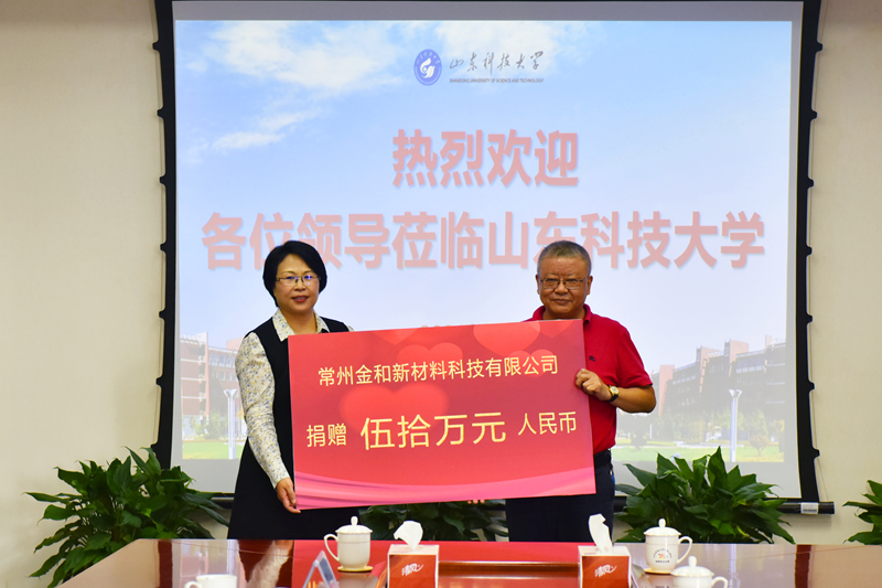 捐赠仪式上,科技处处长陈连军与常州金和新材料科技有限公司党支部书记钱雪忠代表双方签订捐赠协议。常州金和新材料科技有限公司出资50万元支持学校教育事业发展。李玉霞代表学校接受捐赠并回赠捐赠证书,向栾润东颁发开云手机官方版在线入口兼职教授聘书。