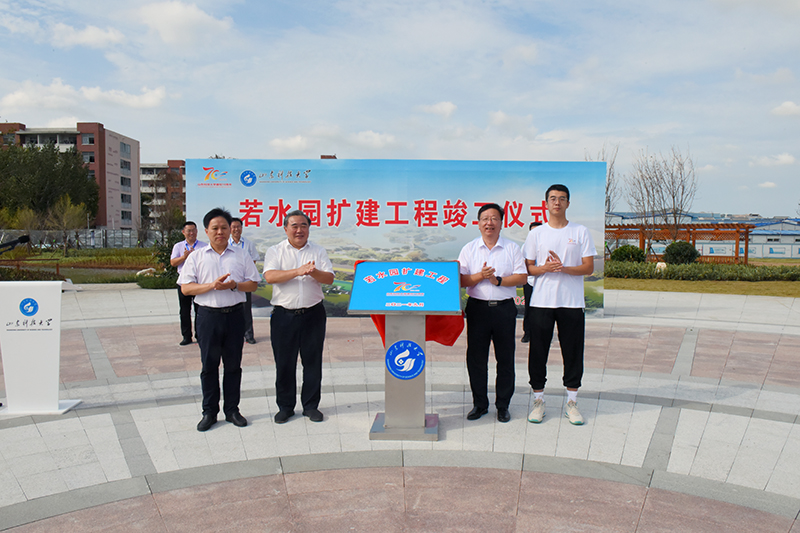 仪式上,姚庆国、张英杰、刘伟韬及学生代表郭铖共同为若水园扩建竣工揭牌。