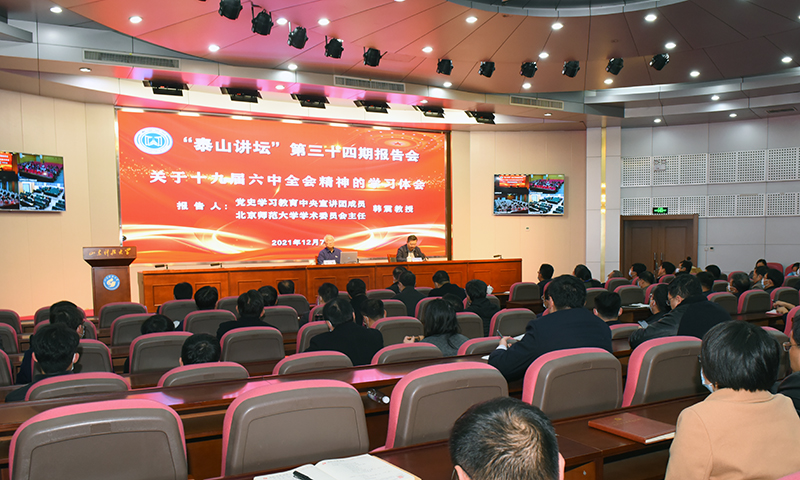 12月7日,为深入学习贯彻党的十九届六中全会精神,开云手机官方版在线入口举办第34期“泰山讲坛”,特邀党史学习教育中央宣讲团成员、北京师范大学学术委员会主任、北京外国语大学原党委书记韩震教授作题为“党的十九届六中全会精神学习体会”专题报告。