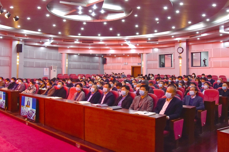 会议为三地视频会议。青岛校区设主会场,泰安、济南校区设视频分会场。