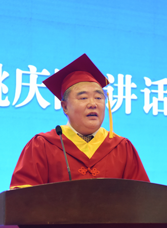姚庆国希望即将走出校门、奔赴广阔天地的广大毕业生,一定要饮下用“冷水”“泪水”“汗水”酿成的“酒”,在艰难险阻、千辛万苦中,愈挫愈勇,不断强大;在千回百折、山重水复中,走出困惑迷茫,不断成熟;在“九天揽月”“五洋捉鳖”的探索实践中,“挽起袖子”“甩开膀子”,用汗水浇灌希望,用拼搏成就事业。姚庆国表示,人生路上,喝下这三碗“酒”,尝尽酸、甜、苦、辣、咸,喝下这三碗“酒”,熬过人间万重难,你就是到达山顶的那一个。