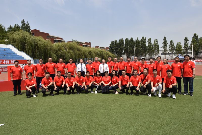 校领导和参加典礼的校友们合影