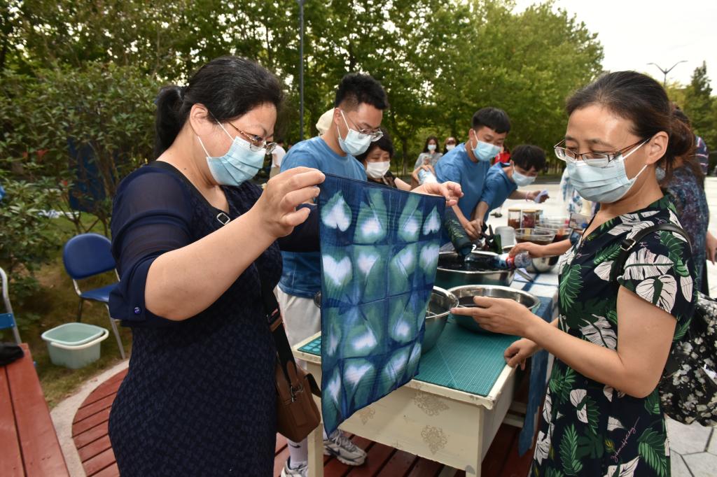 “育人如染布,‘染于苍则苍’,手法和次数会影响作品最终的呈现。浸染的时间越长,次数越多,上色效果就会越深,这就是‘青出于蓝而胜于蓝’的道理。”艺术学院教师宋玉凤告诉记者,“希望通过本次蓝染体验活动,让学生充分感受教师培根铸魂的伟大,也让教师们体会到同学们的无尽敬爱之情。”
