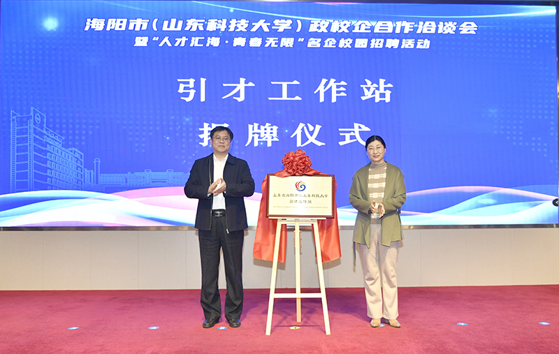 会上,海阳市委常委、组织部部长杨涛与学生工作部(处)部(处)长王震共同为“引才工作站”揭牌,市委组织部副部长、市人社局局长于文刚向校园引才大使代表颁发了聘书。