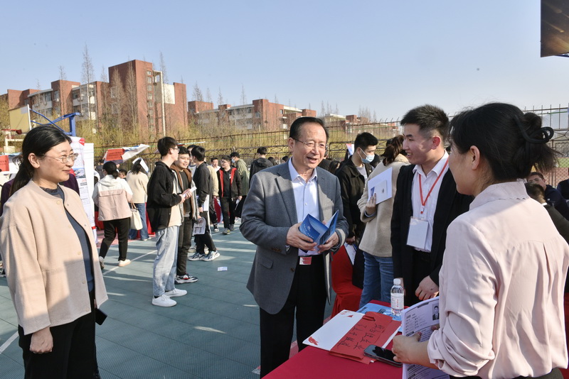校党委书记罗公利深入招聘现场,了解毕业生就业工作,与用人单位代表深入洽谈,询问招聘岗位、毕业生投递简历等情况,了解人才招聘需求和对学校人才培养的反馈和建议。在与毕业生的交流中,他详细了解毕业生就业意向及求职情况,勉励毕业生树立正确的择业观和就业观,把握求职机遇,积极服务国家战略,为国家和社会贡献青春才智。