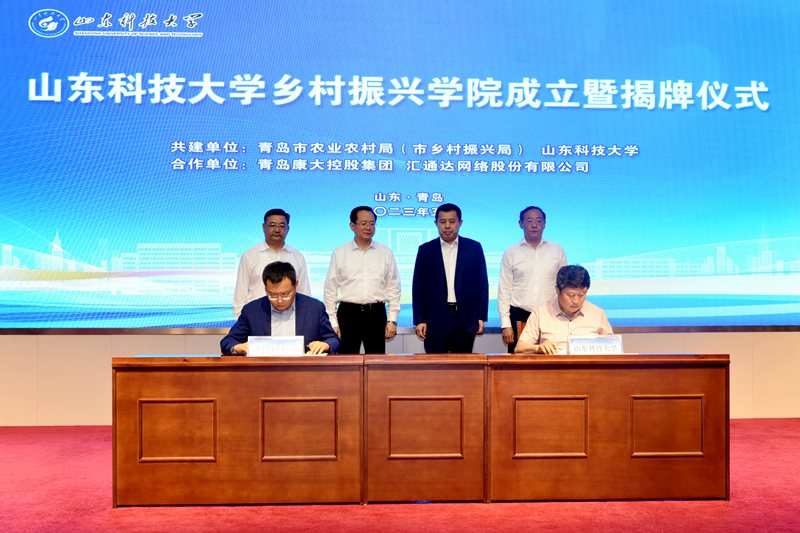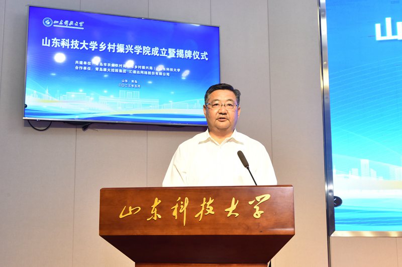 尹华在讲话中表示,实施乡村振兴战略,是以习近平同志为核心的党中央着眼党和国家事业全局发展作出的重大决策部署,高校作为人才培养和科技创新的策源地,我们深刻认识到高校服务乡村振兴战略的历史逻辑、价值逻辑、理论逻辑和实践逻辑,学校与青岛市农业农村局(市乡村振兴局)共建乡村振兴学院,并与青岛康大集团、汇通达网络股份有限公司开展合作,这既是贯彻落实党的二十大精神、服务国家重大战略的重要举措,又是落实习近平总书记关于“打造乡村振兴的齐鲁样板”重要指示精神的生动实践,期望发挥校政企各自特长,将乡村振兴学院打造成为乡村人才第一资源、乡村科技第一生产力与乡村创新发展第一动力的汇聚站。