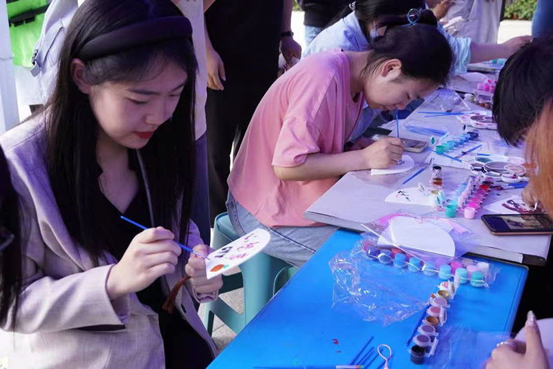 活动邀请4位非遗传承人走进校园,拉近了学生与非遗的距离。现场共设置皮影戏、吹糖人、捏面人、年画、画扇、扎染、陶艺等12项体验展示活动,让学生在“学”与“做”中亲身体验传统文化的独特魅力。