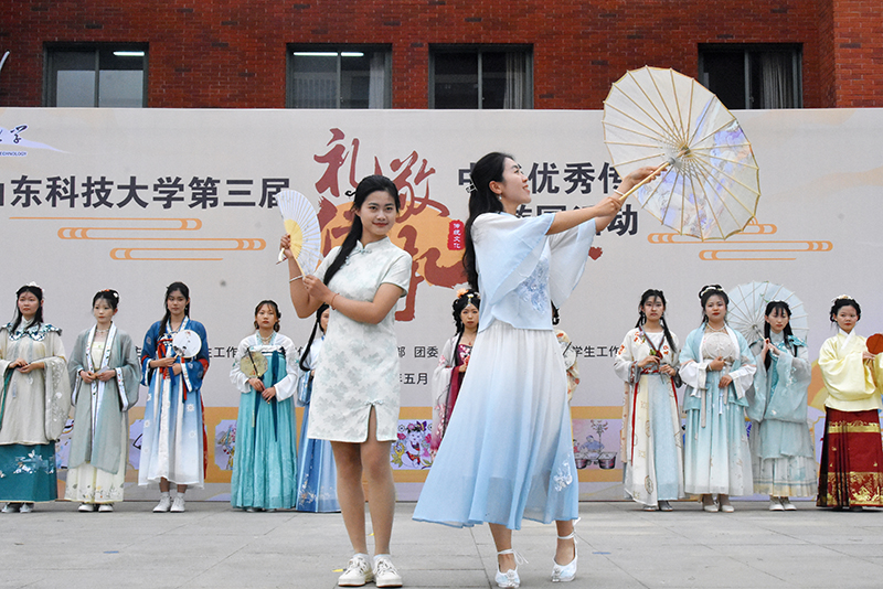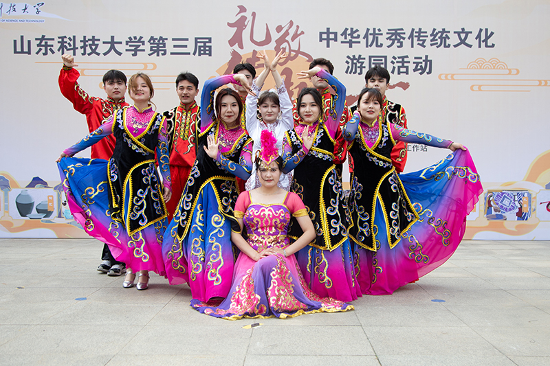 游园活动在喜庆祥和的舞龙表演中拉开帷幕。随后,太极拳表演,一招一式尽显刚柔之气、神韵之美;14名中外汉服古装爱好者带来汉服走秀,向师生展示汉服文化的魅力;二胡合奏赛马,阵阵“马蹄声”让现场瞬间沸腾;12名少数民族学生带来的舞蹈表演,展现了民族舞蹈的特有魅力,点燃了现场的气氛。