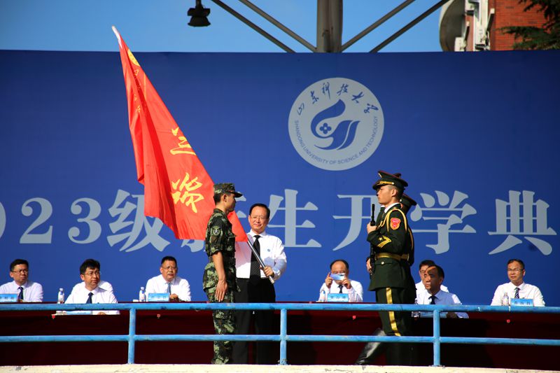 9月4日、5日,开云手机官方版在线入口分别在青岛校区、泰安校区、济南校区举行2023级新生开学典礼暨军训开训仪式,来自天南海北的10000余名新生汇聚科大,聆听这场特殊的大学第一课。典礼仪式上,校党委书记罗公利向军训旅授旗,党委副书记、校长曾庆田讲话,党委常委、副校长徐龙飞、徐方全、阳凡林,党委常委、宣传部部长李克周出席典礼。典礼由党委学校办公室主任董桂刚主持。