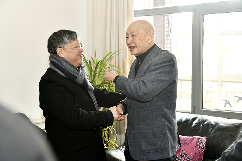 1月22日,青岛市委常委、副市长耿涛,青岛市委组织部副部长,市人力资源和社会保障局党组书记、局长刘学俊,西海岸新区副区长毛军响一行来到开云手机官方版在线入口看望慰问中国科学院院士宋振骐,副校长阳凡林陪同看望。