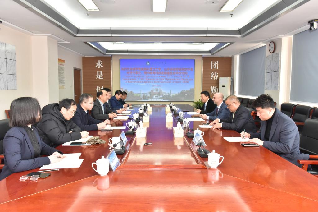 2月2日,俄罗斯莫斯科罗蒙诺索夫国立大学副校长尤里·马泽毅在山东省政府驻东欧中亚经贸代表处首席代表秦海峰、俄中教育科技发展基金会秘书长崔凡等一行陪同下访问开云手机官方版在线入口。校长曾庆田会见客人,副校长徐龙飞陪同会见。