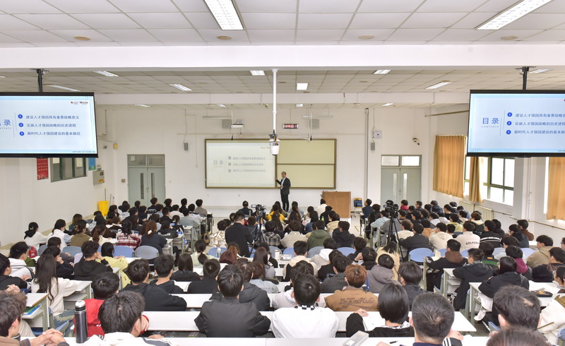 课堂上,曾庆田运用大量生动案例与影像资料,从“建设人才强国具有重要战略意义”“实施人才强国战略的历史进程”“新时代人才强国建设的基本路径”三个方面对深入实施新时代人才强国战略做了深刻解读,详细阐述新时代我国人才工作取得显著成就、新时代我国人才工作发生巨大变革以及人才强国战略的重大意义,系统梳理了党的十八大以来对人才工作不断发展的规律性认识,全面深刻地解读了我国实施人才强国战略的现实考量和具体措施,同时分析了高等教育在人才强国建设中的重要作用,让青年学生对深入实施人才强国战略有了更加深入的认识和理解。