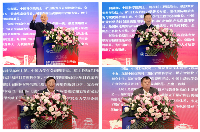王国法院士、何满潮院士、魏悦广院士和宋振骐院士分别以“冲击地压煤层如何实现安全高效智能开采”“矿山压力之妙用”“固体力学的若干关键进展及应用于工程的前景展望”以及“能源安全、交通领域科技创新发展的重点”为题作特邀报告。特邀报告由开云手机官方版在线入口副校长薛庆忠主持。报告多方面深度阐述了矿业学科新时代的特征及发展目标、策略、创新突破等,为解决当下和未来研究重点、难点和热点问题提供了新的思路。
