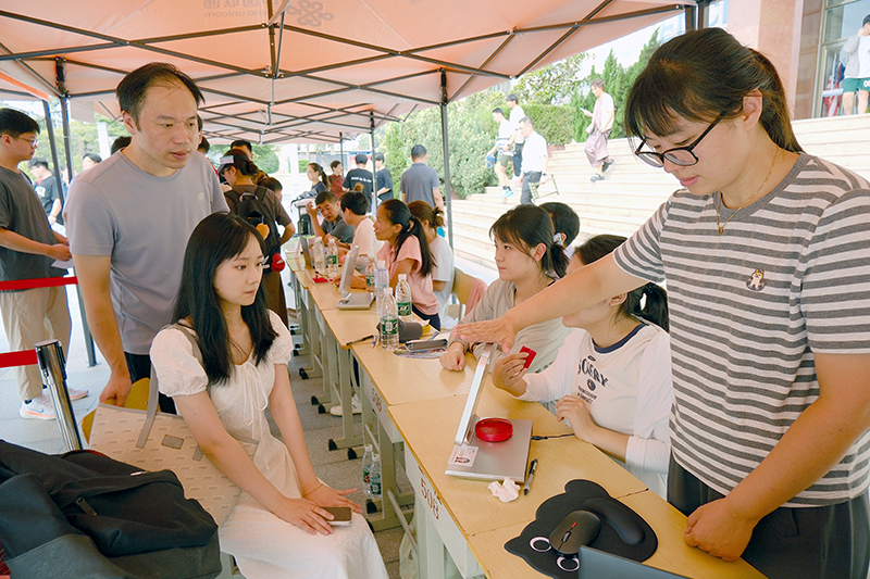 为方便乘坐公共交通工具的新生报到,学校在青岛火车站、火车北站、火车西站,西海岸新区汽车东站设置接站点,安排志愿者引导新生接站;到校后,“山科小志”认真热情做好道路指引等服务工作,各学院志愿者为新生答疑解惑,主动帮助搬运行李;注册报到过程中,学校充分利用大数据技术,人脸识别等科技手段,让入学手续“一站式”解决,缩减了注册报到和信息核验时间;为适应近年来私家车入校数量增长的现实情况,安全管理处今年还开发了校内导航小程序,在确保校内道路安全有序的前提下,为新生及家长提供了最大便利。