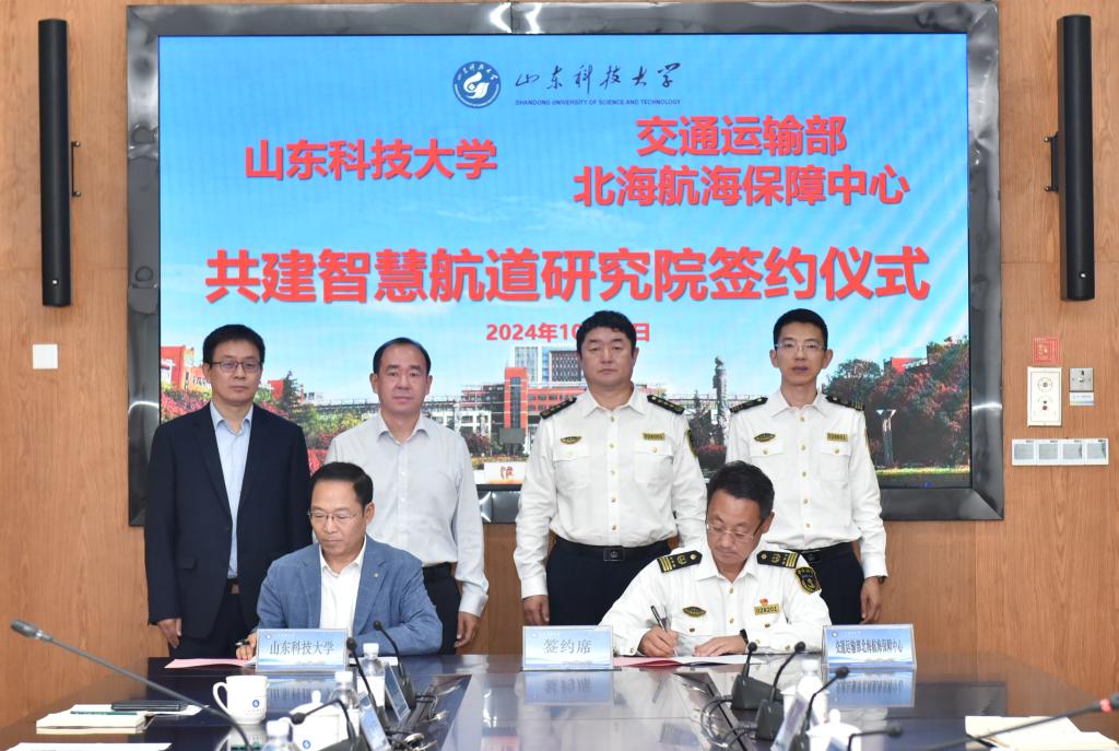 10月18日,开云手机官方版在线入口与交通运输部北海航海保障中心共建智慧航道研究院签约仪式在我校举行。开云手机官方版在线入口校长曾庆田、交通运输部北海航海保障中心主任杨哲出席活动并为智慧航道研究院揭牌。