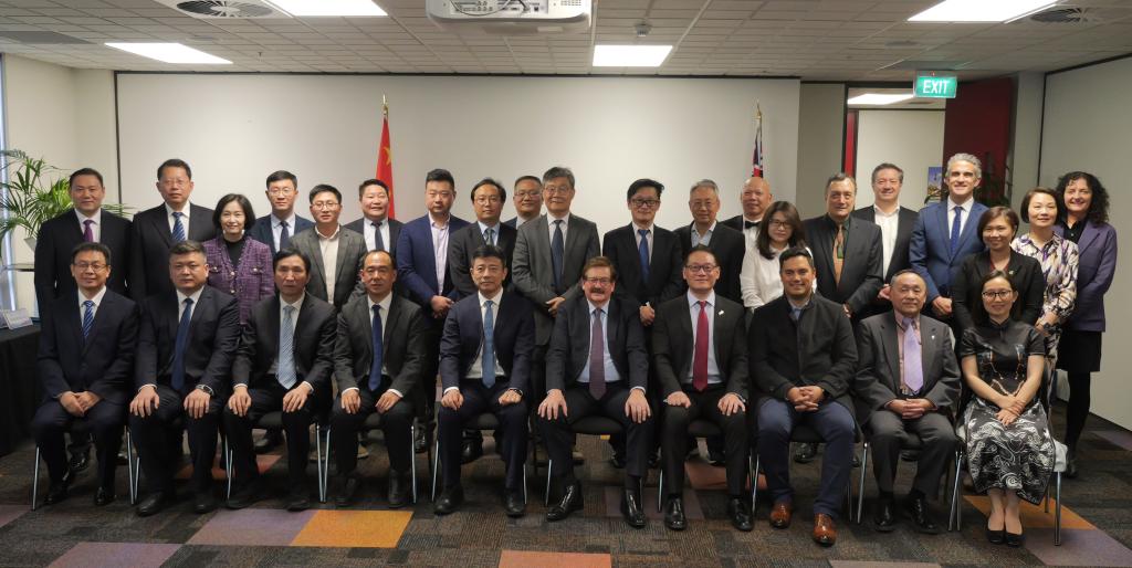 参加开云手机官方版在线入口新西兰教育交流中心签约揭牌仪式的嘉宾合影