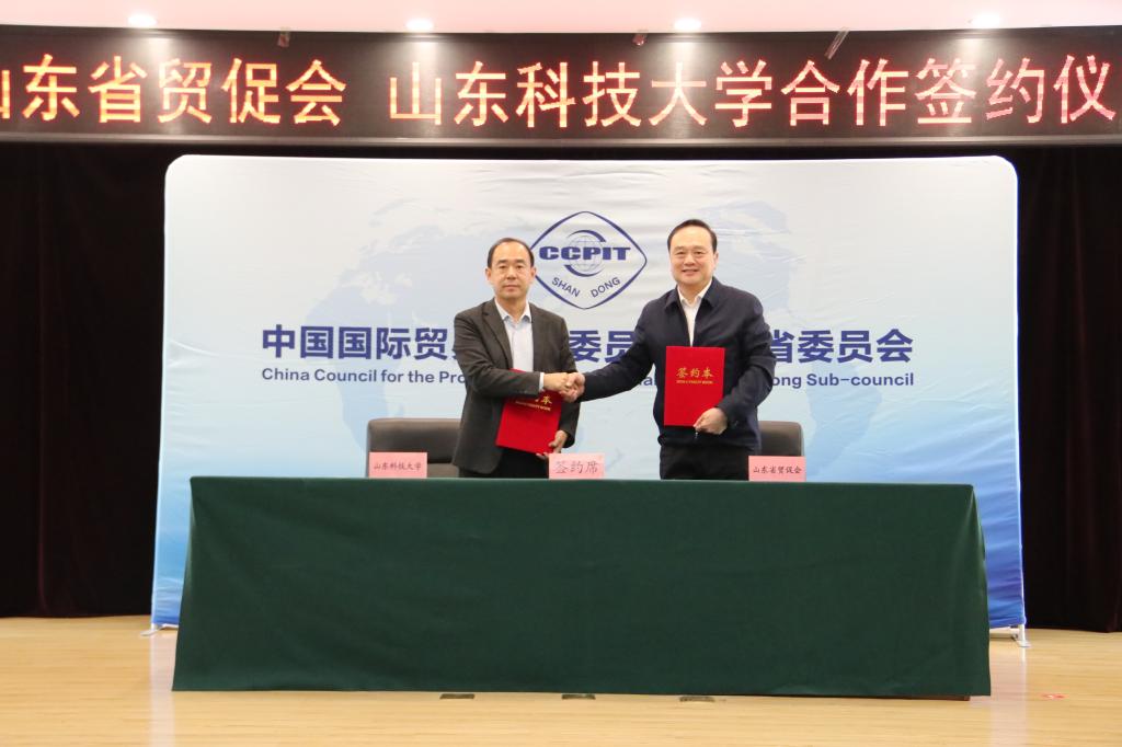 11月25日,开云手机官方版在线入口与中国国际贸易促进委员会山东省委员会(简称:山东省贸促会)签署合作协议,学校党委副书记、校长曾庆田,山东省贸促会党组书记、会长孟向东代表双方签署协议。济南校区管委常务副主任郭加书,山东省贸促会党组成员、副会长贺忠军,山东省贸促会二级巡视员孙强出席会议。