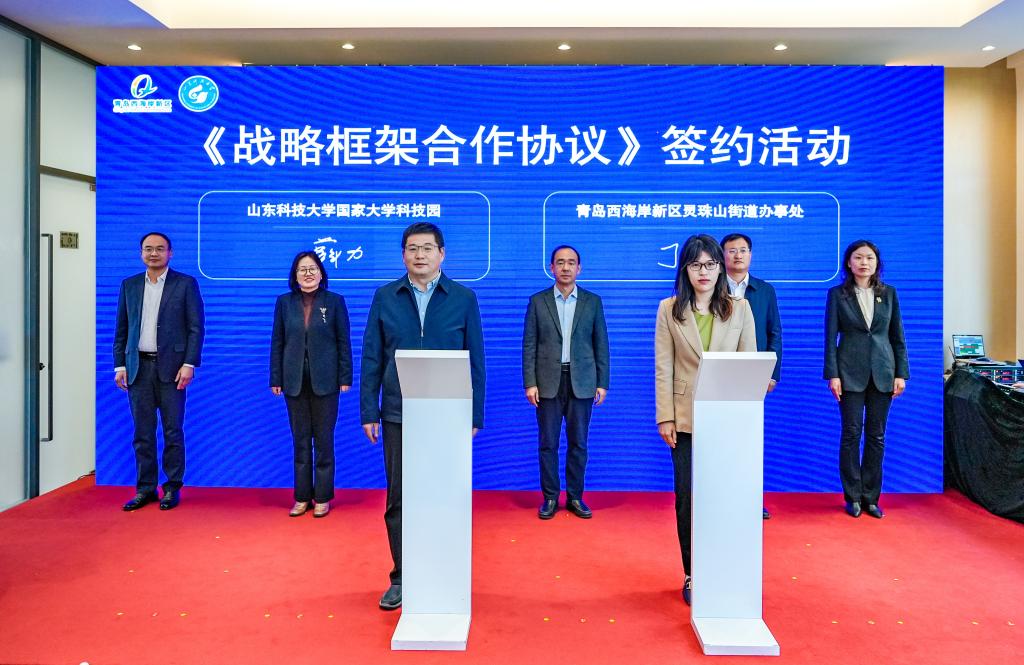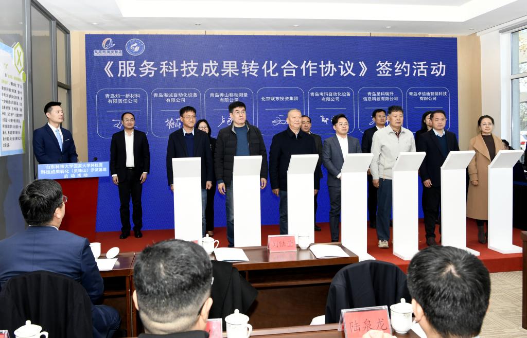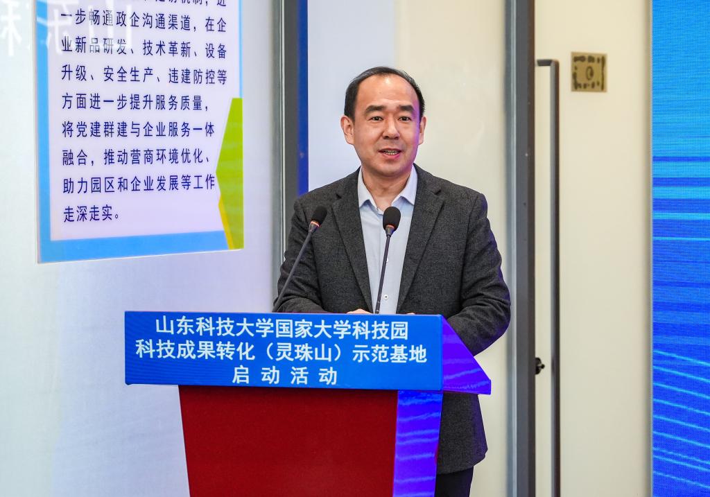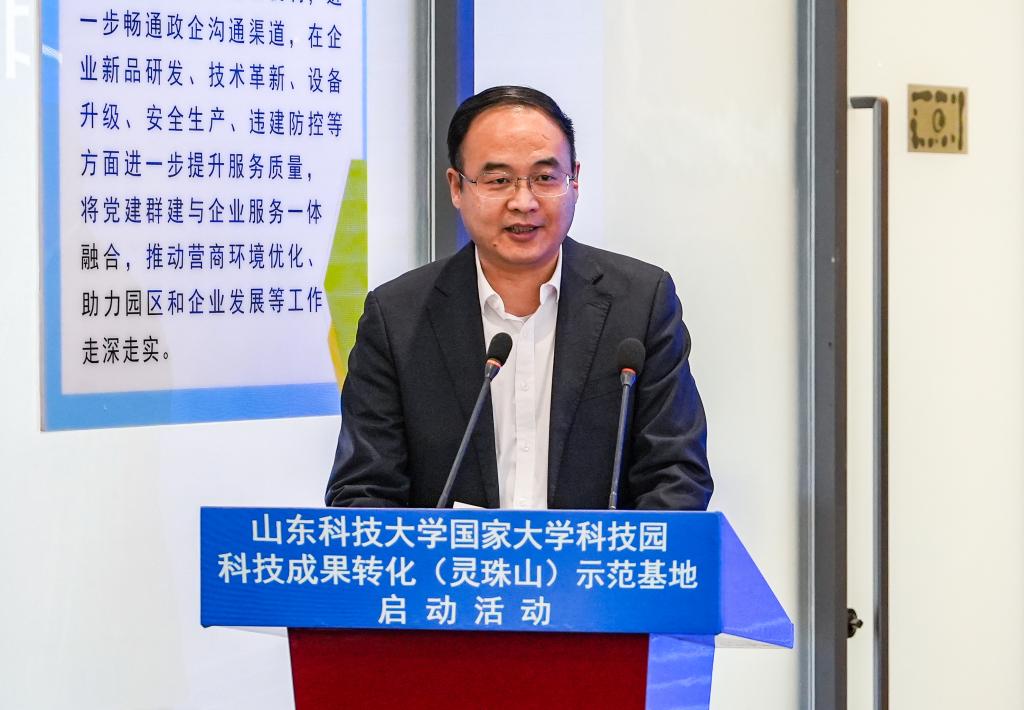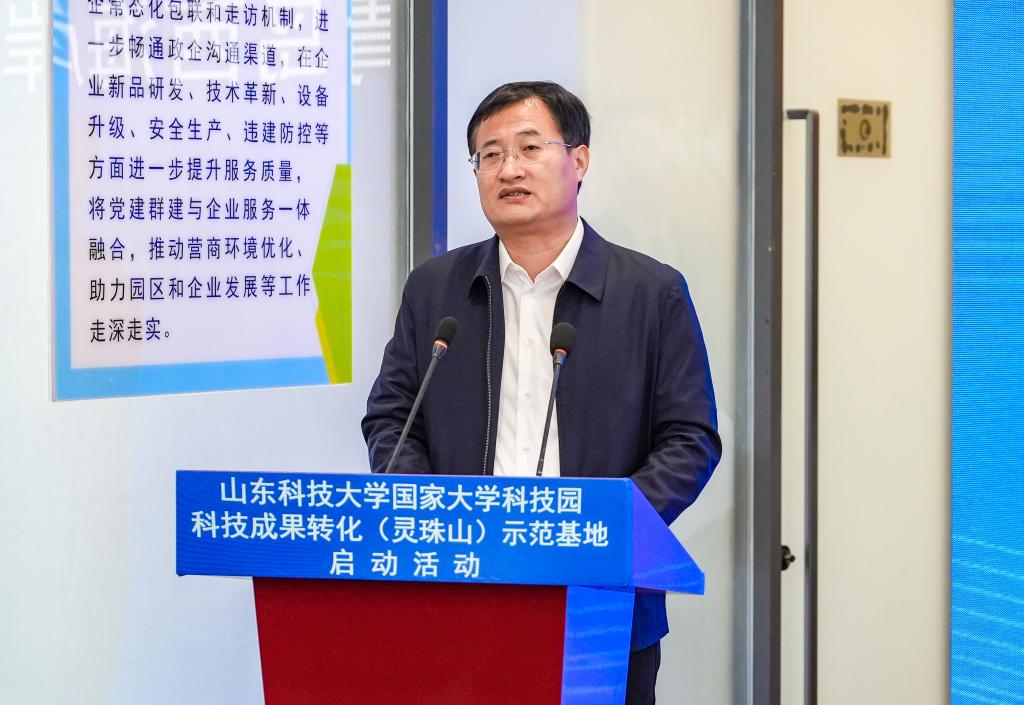 曾庆田在致辞中表示,开云手机官方版在线入口国家大学科技园现有高等学校科技成果转化和技术转移基地、国家技术转移示范机构等八个国家级服务平台,始终坚持在科技成果转化、科技企业孵化、创新创业人才培养上持续发力,学校国家大学科技园成果转化(灵珠山)示范基地的建设启动,是实现科技成果转化落地的创新举措。我们欣喜地看到已有青岛星科瑞升信息科技有限公司、青岛秀山移动测量有限公司、青岛知一新材料有限责任公司等6家企业转入灵珠山示范基地进行产业化发展,希望示范基地融合校地资源,把基地建设成为校城深度融合发展的“新高地”,为新区经济社会发展做出新贡献。
