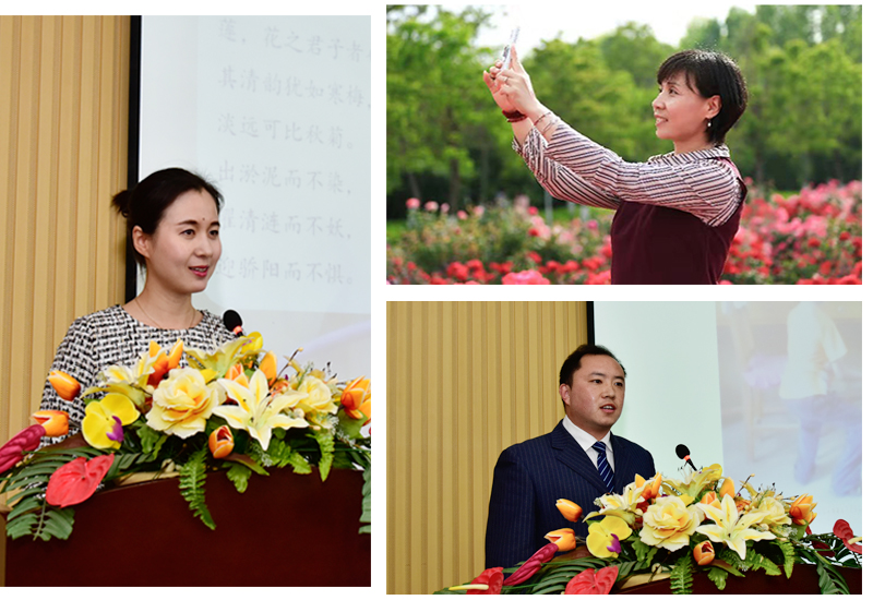 徐慧老师则发挥特长,现场演唱一曲《春暖花开》,唱出了教师对学生如春风化雨的心声。而更多的教师选择了用演讲的形式,倾情表达对师德的理解和感悟。杨晨晨代表学院机关办公室教职工讲述一班人爱岗敬业、尽职尽责的师德风尚;日语系马力讲述为人师者用真情与责任感染学生的平凡与伟大;徐育新阐释大学英语第二教研室老师对师德的感悟;姜妮讲述翻译系刘炳淑“三尺讲台驻芳华”的动人故事;学术英语教研室王华讲述张卫东曹慧玲李允等三位“铿锵玫瑰”用实际行动诠释“以梦为马不负韶华”的理想;中外文化教研室孔昭莉的《感恩,遇见》娓娓道来,讲述同事热爱讲台、默默奉献的点点滴滴,令人动容……