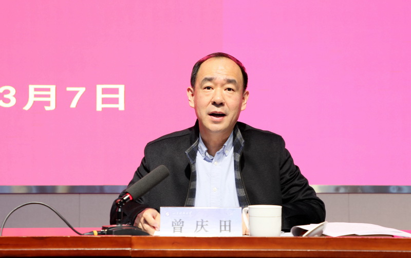 曾庆田在主持会议时提出三点要求,一要坚定政治站位,时刻保持全面从严治党的政治自觉。要深刻把握当前党的建设和全面从严治党面临的新形势新任务,传达落实好学校全面从严治党工作会议精神,切实把思想和行动统一到党中央决策部署、省委工作要求和学校党委工作安排上来。二要严明纪律规矩,提振全校干部职工干事创业精气神。要持续推动党的建设、全面从严治党各项工作部署落地落细,持续营造风清气正、干事创业良好政治生态,汇聚起推动学校改革发展的强大精神力量。三要深化党建引领,聚力助推学校高质量发展。要坚持党建引领促改革,聚焦学校重点任务,强化党建与事业发展深度融合,以召开学校第四次党代会为契机,进一步统一思想、凝聚力量,共同推动学校高质量发展再开新局、再创新绩。