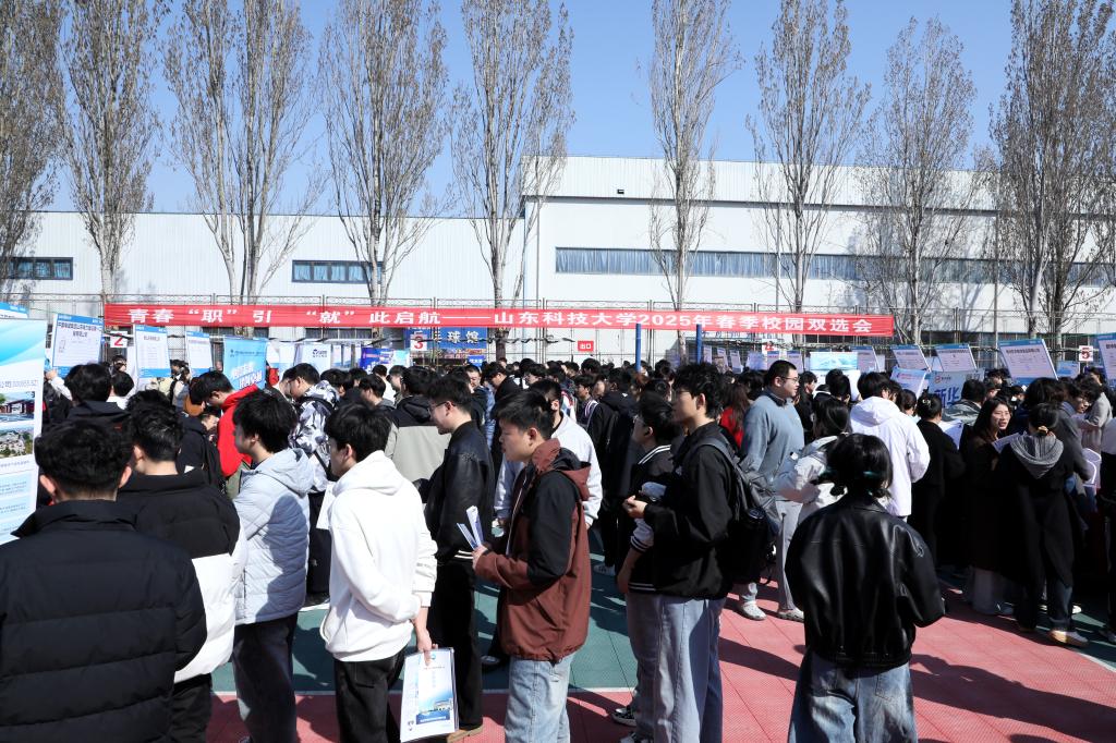 “国企引领、校友助力、区域联动”是本次双选会的鲜明特色。会前,学校以服务国家战略为主线,聚焦山东省“十强产业”,精心接洽相关单位,主动向各地人社问需,优化就业服务链条,“朋友圈”不断稳固扩容。三峡集团、济宁能源、中铁集团、中冶集团、中国重汽、河南能源等110家大型央国企强势入驻,北京安科兴业科技股份有限公司、山东鼎安检测技术有限公司、尤洛卡股份有限公司等校友企业前来支持。青岛、淄博、东营、菏泽、日照等10地市也纷纷“组团”前来,吸引毕业生投身当地经济社会发展。双选会期间,淄博市引才专员“牵线搭桥”,发动30家淄博企业组团前来揽才。此外,双方还组织开展政校企交流座谈,围绕校地合作、学生就业、科技成果转化等展开深度对接。