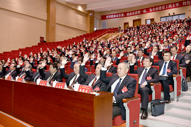 大会号召,全校各级党组织,广大党员和师生员工要在新一届党委的坚强领导下,更加紧密地团结在以习近平同志为核心的党中央周围,高举习近平新时代中国特色社会主义思想伟大旗帜,不忘初心、牢记使命,追求卓越、只争朝夕,矢志一流、强特扩优,为全面建设工科主导、特色鲜明的高水平应用研究型大学而团结奋斗。
