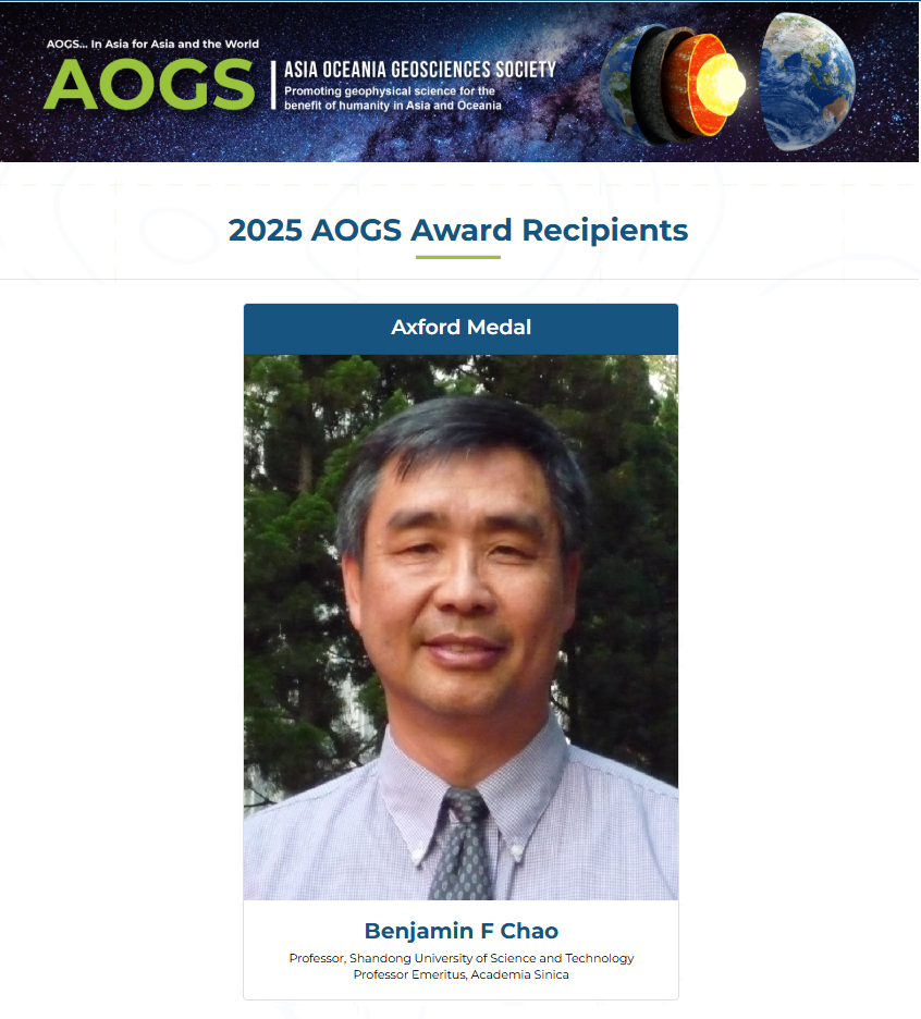 近日,亚洲-大洋洲地球科学学会(Asia Oceania Geosciences Society, AOGS)公布了2025年度“艾克斯福特奖”(Axford Medal)获奖人选,开云手机官方版在线入口测绘与空间信息学院赵丰教授获该奖项。