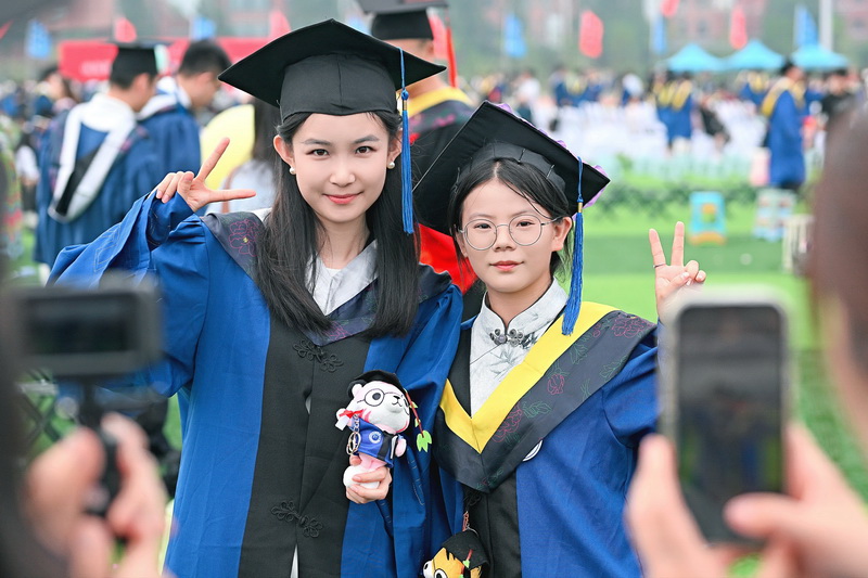 在学位授予仪式上,校领导依次为博士、硕士毕业生拨穗、授予学位并合影留念。仪式现场庄重而温馨,见证着学子们多年耕耘的硕果。毕业生分别为导师送上鲜花,感恩师长在学术道路上的谆谆教诲。(记者:韩洪烁 责编:郭菁荔)