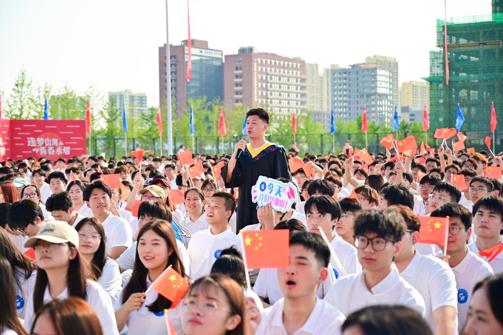 “我是计算机学院毕业生王悦,下一站,我将入职零跑科技从事技术研发”“我是机电学院毕业生苏久钊,毕业下一站,我将二次入伍进入部队”“我是电信学院毕业生王以军,我将前往北京邮电大学攻读硕士研究生”“我是地科学院毕业生苏比努尔·尼牙孜,下一站,我将作为一名西部计划志愿者服务新疆建设”……典礼前,毕业生代表纷纷向师长汇报自己的毕业前行方向:去西部、去研发、去深造、去部队。一名名科大毕业生们展示着扎根基层的赤诚、投身科研的热血、继续求学的追求,吹响奔赴祖国四面八方的号角。数十名毕业生献上精彩的暖场表演,他们用动情的歌声诉说着对母校的眷恋与对师友的不舍。