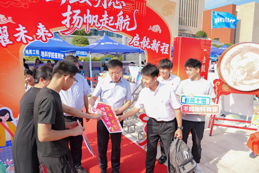 在青岛校区迎新现场,校党委书记王君松、校长曾庆田等校领导在相关部门负责人陪同下,详细了解新生报到和迎新工作情况。在安全学院学生宿舍,王君松与来自新疆的新生亲切交流,勉励新生尽快适应新的学习环境和生活节奏,早日成长成才,并为学生送上了学校精心准备的书籍《科大故事》、生活用品等爱心大礼包。在电信学院迎新点,曾庆田与新生亲切交流,了解新生报考专业情况和学习规划,表示学校将尽己所能提供好的条件,助力同学们安心学习,勉励新生以梦为马,不负韶华。