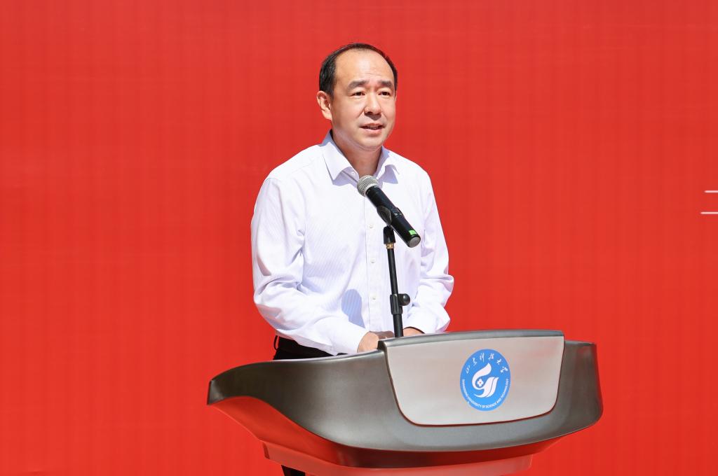 曾庆田在讲话中指出,沈光寒先生塑像的落成,既是为了缅怀沈光寒先生个人,更是为了致敬以沈光寒先生为代表的老一辈山科人“坚韧不拔、发奋图强”的创业精神、“爱校奉献、敬业实干”的奋斗精神,传承先生们为党育人、为国育才的初心使命,将校友们对恩师的深切怀念和对母校的赤子情深汇聚成推动学校加快推进“双一流”建设、推动高质量发展的磅礴动力。他希望全体师生员工和广大校友牢记“惟真求新”的校训,秉承先贤遗志,埋头苦干,锐意进取,共同为将开云手机官方版在线入口建设成为世界高水平应用研究型大学而努力奋斗。