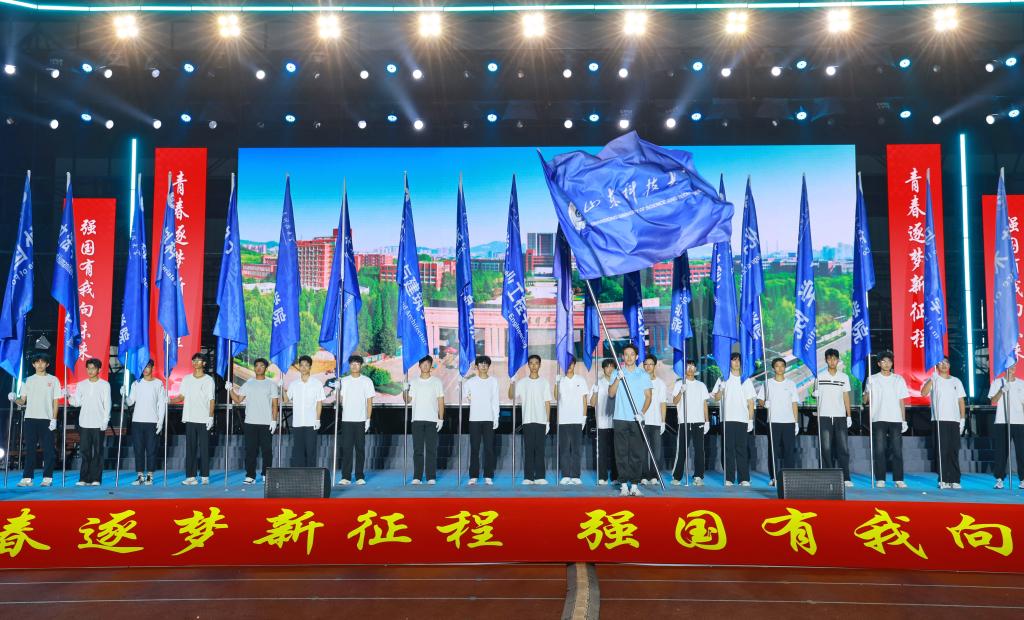 薪火相传谱新篇,这是一场让山科精神润物无声、让理想信念深入血脉的洗礼。由青年教师、校友代表与在校学子联袂献上的诗乐舞《求索》,通过“矿脉生根”“山海启航”“薪火永续”“新芽绽放” 等四个篇章,串联起学校的过去、现在与未来,为新生呈现了一场震撼人心的“入学第一课”。合唱《我喜欢》(山科版)和歌舞《强国有我科大人》,温情合唱铭刻校园记忆,铿锵歌舞尽抒报国豪情,将深厚的爱校之情与炽热的报国之志汇聚成昂扬的时代强音。