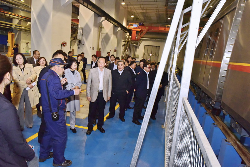 随后,中心组一行实地参观了地铁检修库、控制中心,切身体会青岛地铁的发展运营氛围,并对地铁检修、控制及基本生产运作有了更全面的认识。在青岛地铁2号线检修库,中心组一行听取了检修技术人员的介绍,详细了解地铁设备日常检修、维护流程;在地铁线网运营管理与指挥中心,听取地铁运营管理情况汇报,通过路网监测平台,了解客流情况、站内运行情况等,其中,青岛地铁多项技术引起了学校相关学院和职能部门负责人的浓厚兴趣,对标本单位实际情况,积极寻找合作切入点,并针对青岛地铁集团提出的技术难点,提供专业的服务和建议。