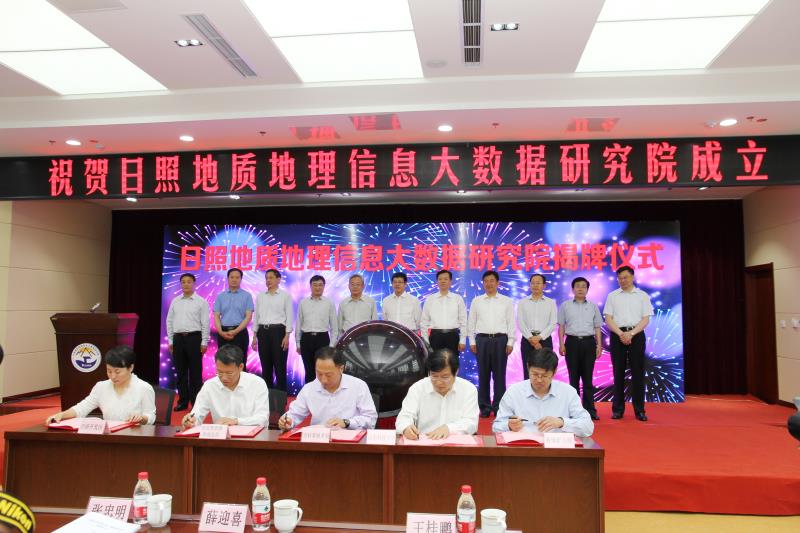 签约仪式上,高建广与薛迎喜、张忠明、王桂鹏、张培林共同为日照地质地理信息大数据研究院成立揭牌。地科学院院长魏久传受学校领导委托,与山东省第八地质矿产勘查院、日照市科技局、日照市自然资源与规划局、日照经济技术开发区代表签署了共建日照地质地理信息大数据研究协议,测绘学院教师王健作为学校受聘专家团队签署了聘任协议。