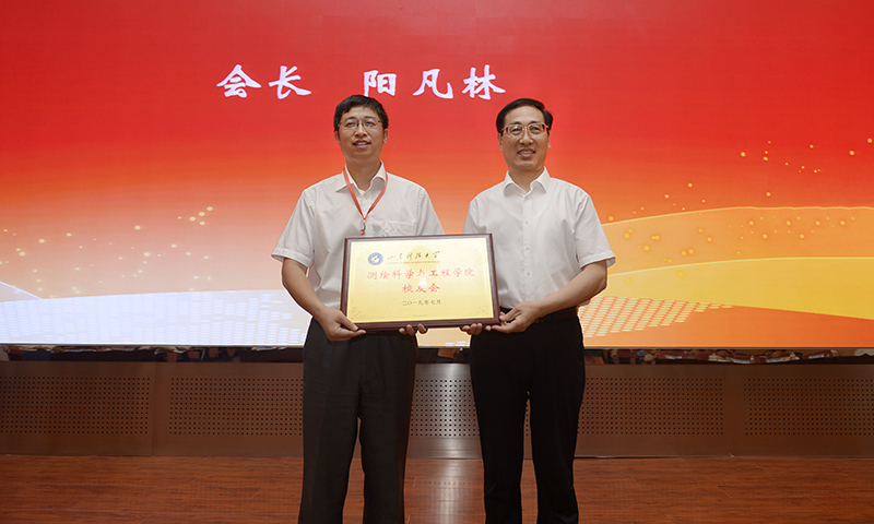 7月21日,70多位测绘学院校友与测绘学院领导、教师及学生代表汇聚一堂,群贤集会,齐声合唱《歌唱祖国》,共叙师生友情,共商发展大计,举办测绘类专业政商企产学研协同育人研讨会暨测绘学院校友会成立大会。副校长孙鹤汀出席会议并讲话,为测绘学院校友会授牌,向当选会长、学院校友会顾问颁发聘书。