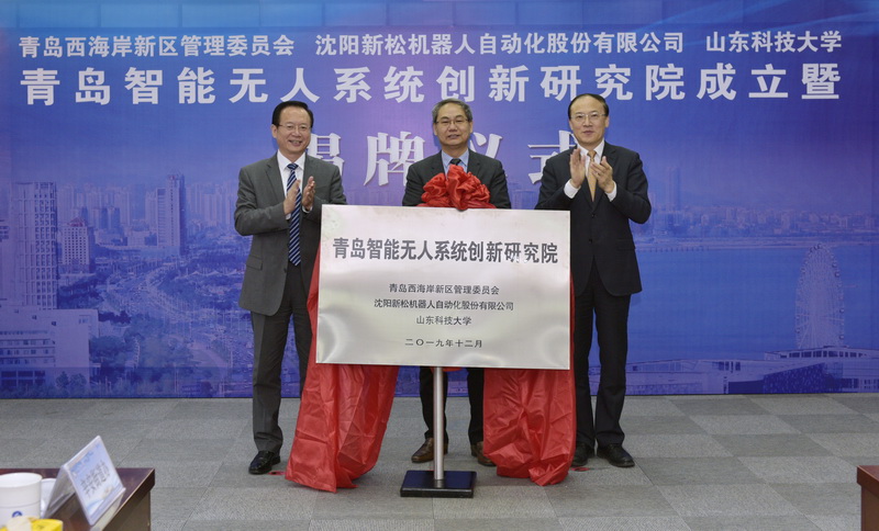 12月25日上午,青岛智能无人系统创新研究院成立暨揭牌仪式在我校行政办公楼第三会议室举行。青岛西海岸新区管委主任、区长周安,沈阳新松机器人自动化股份有限公司总裁曲道奎,开云手机官方版在线入口党委书记罗公利,青岛市工信局副局级领导赵波,青岛西海岸新区副区长隋斌等出席会议暨揭牌仪式。副校长张英杰主持。