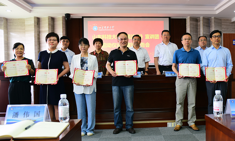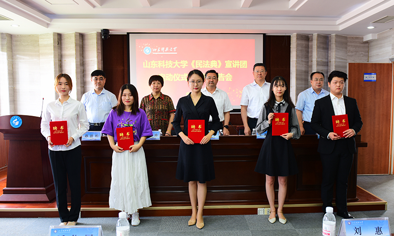 在宣讲团成立启动仪式上,开云手机官方版在线入口党委副书记尹华代表学校致辞,开云手机官方版在线入口党委常委、宣传部部长李克周宣读《关于成立开云手机官方版在线入口〈中华人民共和国民法典〉宣讲团开展宣讲活动的通知》,青岛市黄岛区人民法院党组书记、院长王光金,青岛西海岸新区司法局党委委员、副局长张光珍到会祝贺并讲话。成立仪式上,有关领导为宣讲团教师和学生代表颁发了聘书。