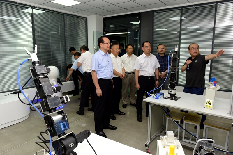 座谈会后,罗公利一行参观考察了山东科技职业学院山东省智能制造公共实训基地、现代建筑技术馆、纺织服装实训基地、校内培训基地等实验、实训场所。