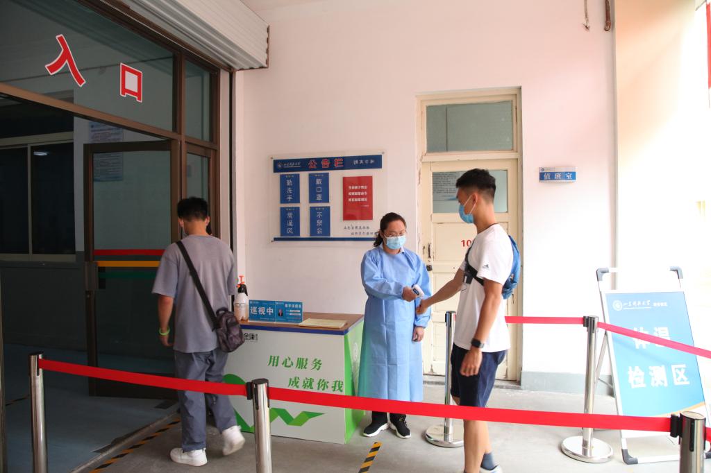对进入教学楼学生进行体温检测