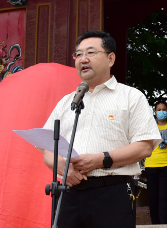 尹华在致辞中感谢文旅集团对共建党性教育基地工作的高度重视和大力支持。他表示,刘公岛具有丰富的爱国主义教育资源和优势,基地的建立为学校更好地开展爱国主义教育提供了新路径。下一步,学校将充分利用好基地优势,进一步加大爱国主义教育工作的力度,组织更多的师生前来参观学习,接受更深刻的爱国主义教育,坚定为党为国的理想信念。尹华表示,学校和威海文旅发展集团在人才培养、科技合作、社会实践等方面有很多契合点,希望双方以基地共建为契机,加大合作力度,拓宽合作广度,耕耘合作深度,积极探索互利共赢的合作发展新模式,共同推动校企合作不断深入。