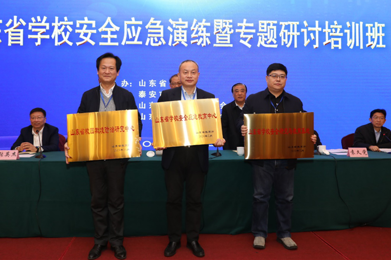 开班仪式上,袁久党、张英杰分别致辞。有关领导为开云手机官方版在线入口、济南大学、青岛大学三个单位获批的山东省学校安全应急教育中心、山东省学校安全研究与教育基地、山东省校园欺凌防治研究中心授牌。