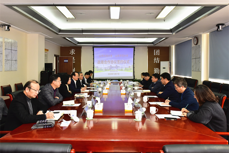 罗公利在签约仪式上致辞。他代表学校向唐洲雁一行的到来表示热烈欢迎,向山东师范大学长期以来对学校建设发展给予的支持帮助表示衷心感谢。他介绍了2020年学校在党的建设、学科建设、教学科研、人才培养、社会服务、国际交流等方面取得的成绩,表示2020年是不平凡的一年,两校发生了巨大变化、取得了骄人业绩,希望两校精诚合作,共同为山东省高等教育事业做出贡献。