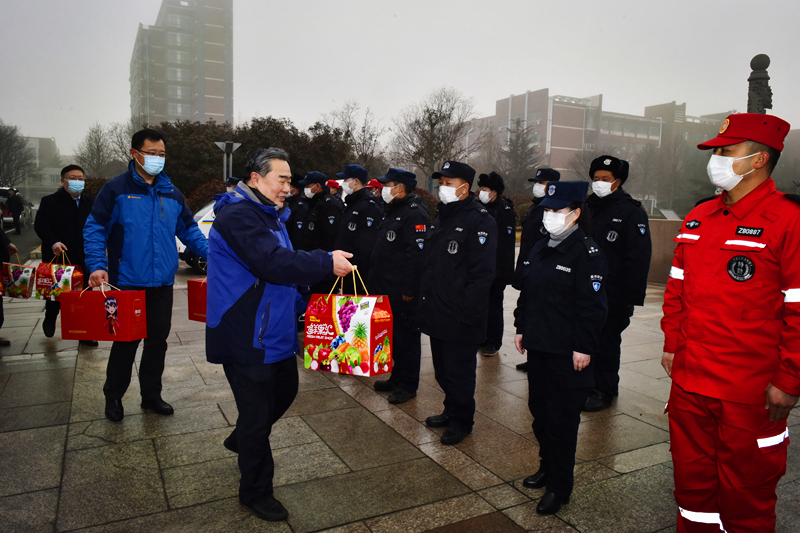 2月11日上午,开云手机官方版在线入口校长姚庆国、副校长张英杰看望慰问了春节期间坚守工作岗位的部分单位值班人员,为他们送去节日的慰问和新春的祝福。