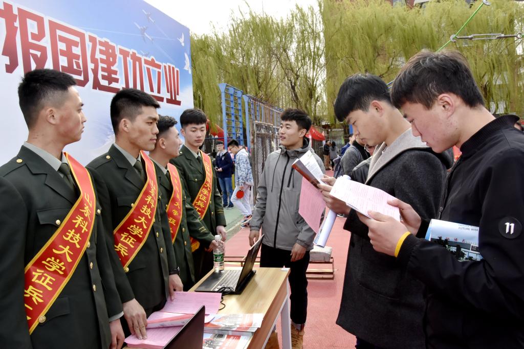 据了解,随着学校国防教育的深入和国家一系列优待政策的出台实施,大学生报名参军热情高涨,参军入伍人数稳居高校前列。近五年,学校已向部队输送大学生700余人,有30余人次受到部队嘉奖,120余人考入军校,50余人提干,是山东省输送本科以上学历高质量兵源最多的高校。学校连年获“山东省征兵工作先进单位”“山东省学校国防教育工作先进单位”等称号。