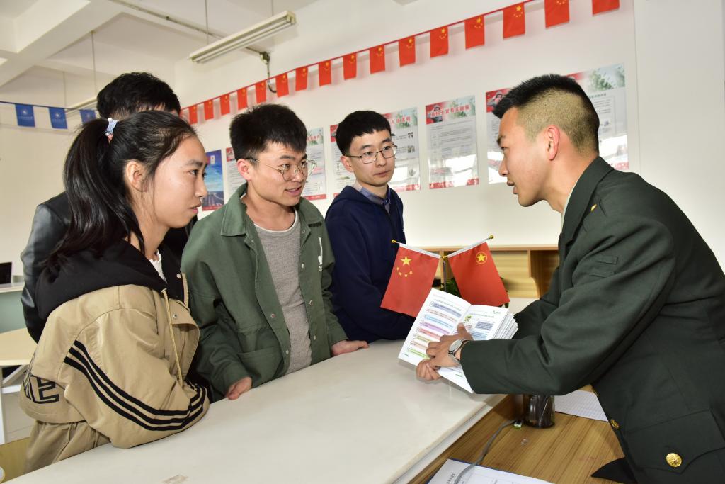 为做好征兵各项工作,学校建立了“学校、学院、班级”三级征兵工作体系,学校统筹安排,各学院根据专业班级细化征兵任务指标,学生党支部、团支部对意向入伍学生给予正确引导,学校还建立了“一站式”服务型征兵工作站,为应征入伍大学生提供全过程、全方位服务,让学生便捷、顺利地应征。