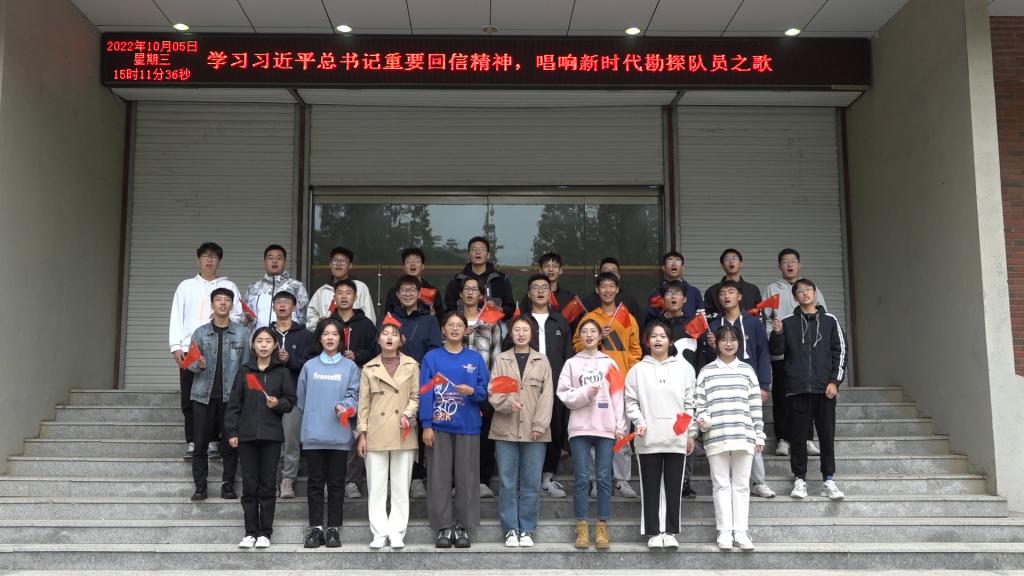 习近平总书记的回信振奋人心,给地质学子巨大鼓舞。10月5日,地球科学与工程学院党委积极响应,以各种形式迅速开展“我为祖国找矿藏”主题党日活动和“学习习近平总书记重要回信精神,唱响新时代勘探队员之歌”主题团日活动。