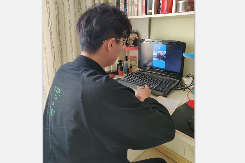 学生在家收看学校录制的就业知识视频